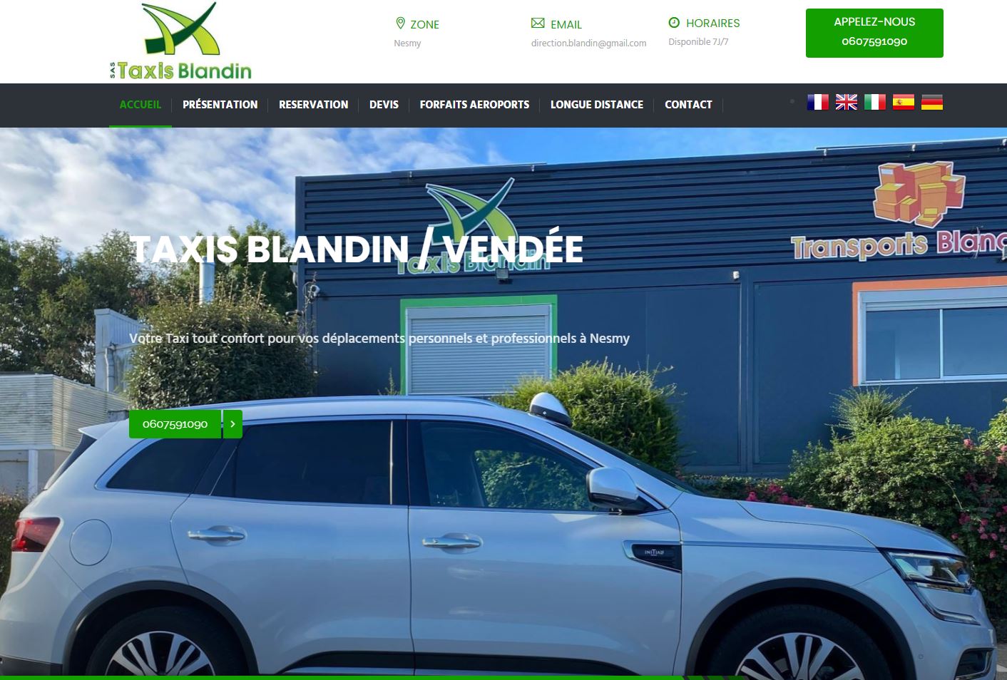 VisualiserRESERVER TAXI BLANDIN 24H/7J Vous avez besoin d’un taxi ? Vous êtes au bon endroit. En effet, notre compagnie TAXI BLANDIN vous propose ses services 7 jours sur 7 et 24 heures sur 24 sur la Vendee .Sur réservation quelques soit votre lieu de départ . Taxi Blandi...